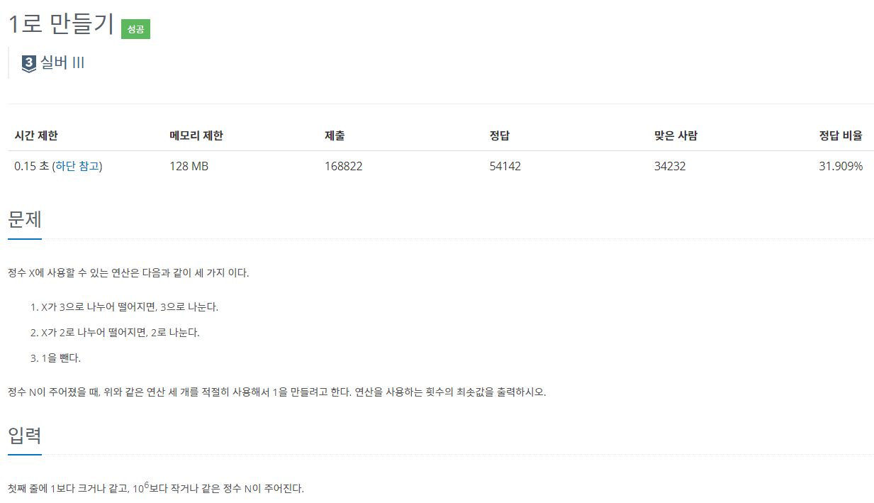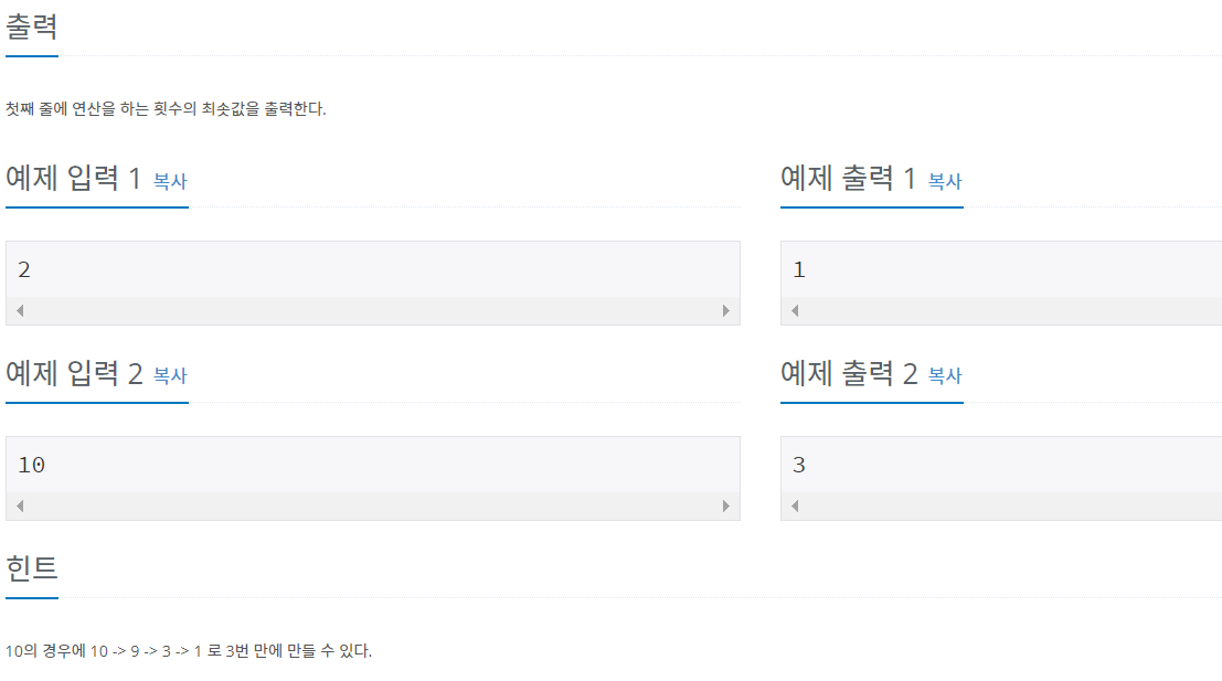 if(num==1 | dp[num] >0) { // num이 1이거나, num의 연산 횟수가 이미 있다면