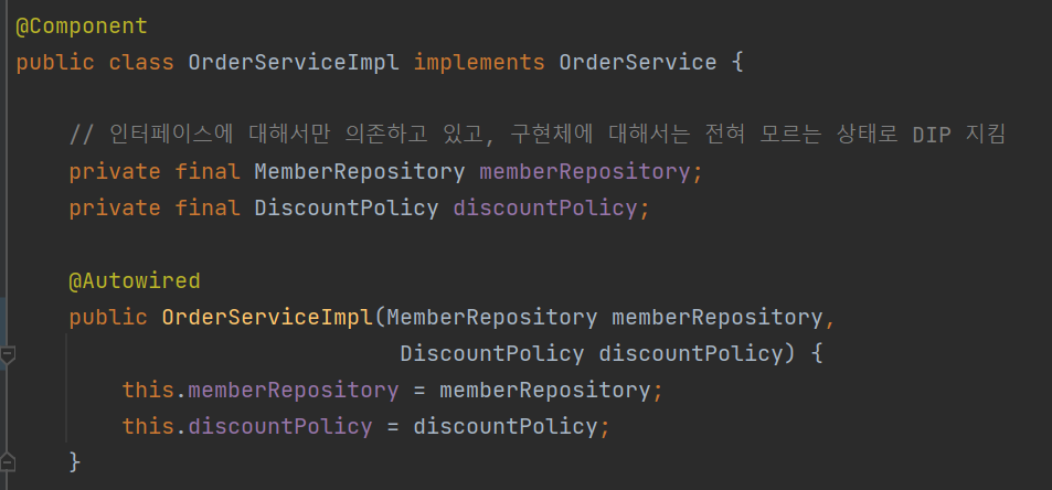 원래 DiscountPolicy 인터페이스를 구현한 구현체가 Rate, Fix 두 개가 있어서 어느 빈을 가져와야 하는지 불명확했지만