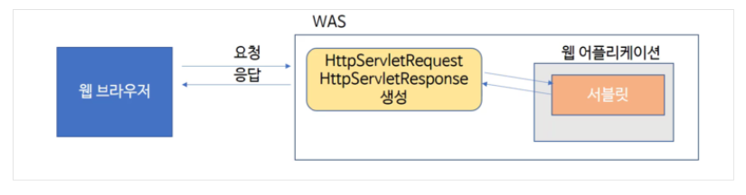 WAS 가 HttpServletResponse 를 생성해 Servlet 에게 전달하면