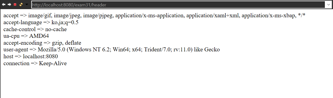 String headerValue = request.getHeader(headerName); // 헤더정보