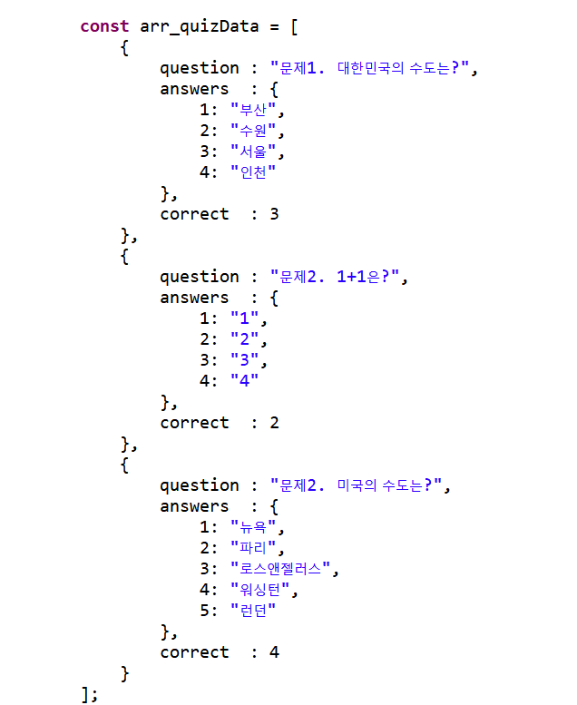 눈여겨 봐야 할 것은 객체배열 안에 answers 객체가 또 들어있는 형태라는 것이다.