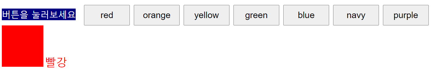 다양한 방법이 있겠지만 태그.click() 안에서 색깔을 화면에 띄우는 방식들을 살펴보겠다.